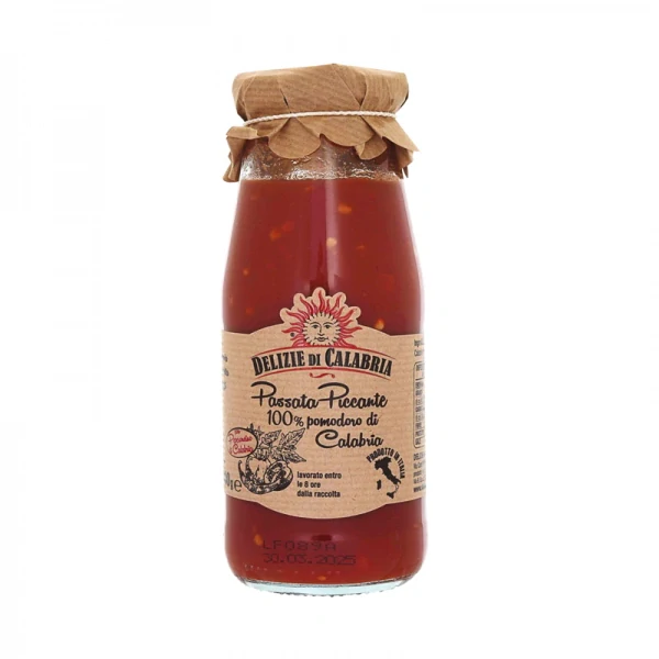 Složení: Kalábrijská rajčata 90,5%, kalábrijské chilli papričky 9%, jodizovaná sůl.